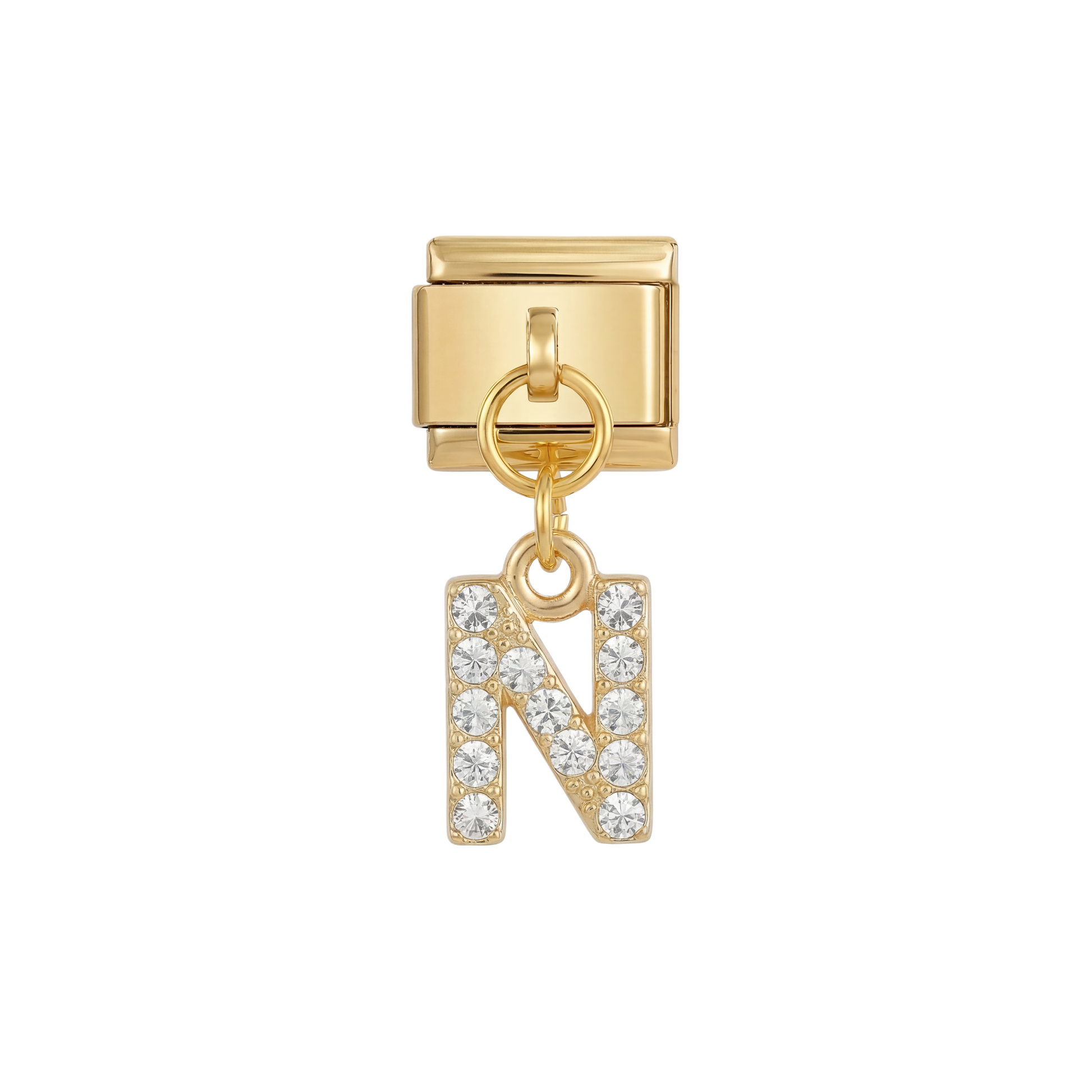 Letter N with stones, Hanging, on Gold